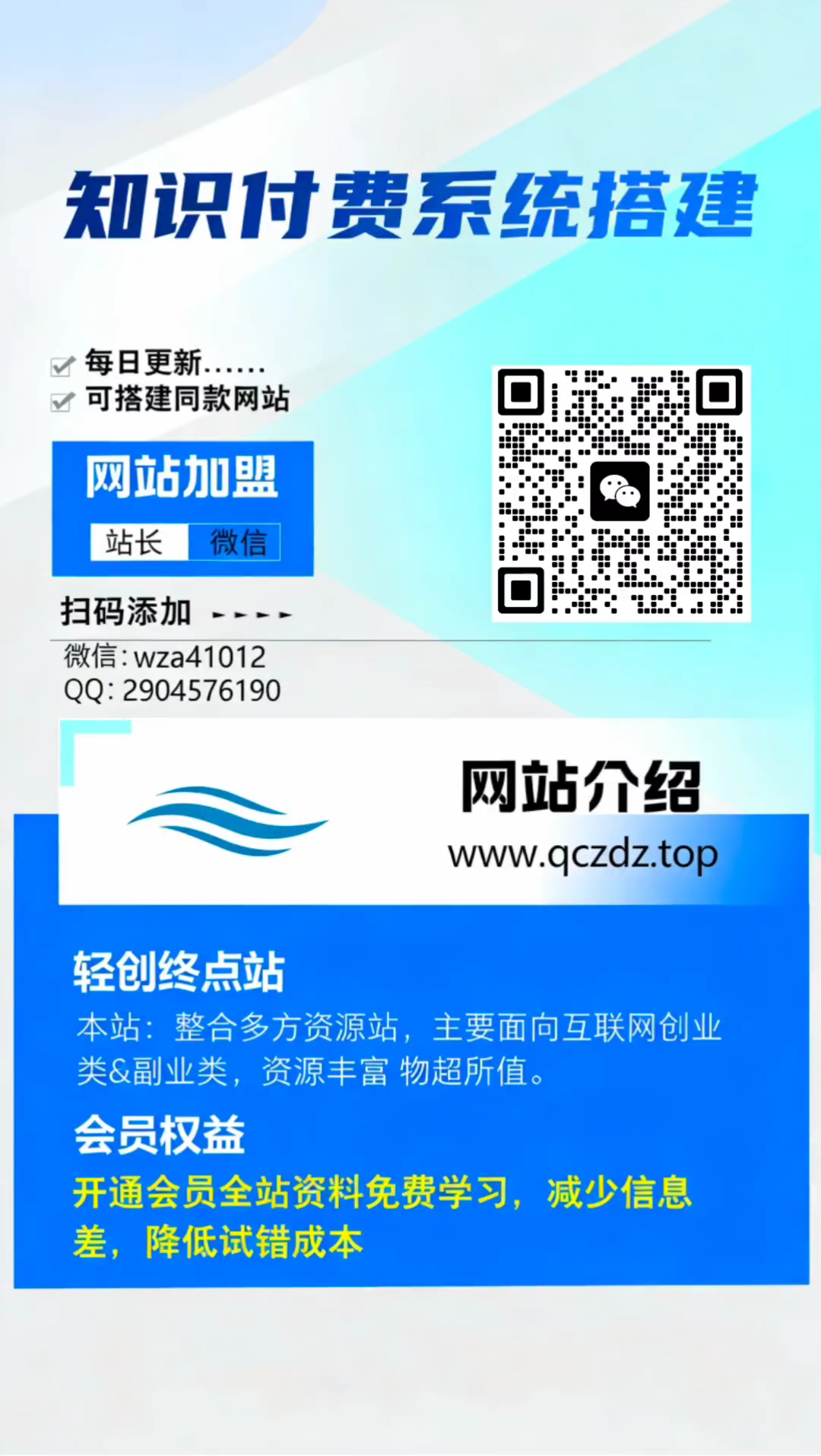 加盟爱尚网赚,加盟搭建同款知识付费资源网站,实现长期稳定被动收入~